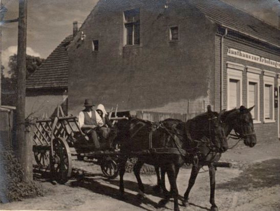 Die Wiesen waren auf der anderen Straßenseite und die voll bepackte Heufuhre musste durch Sandwege mit engem Baumbestand durchmanöveriert werden. Hedwig Muchow verstand die Kunst des Heustapelns am besten und blieb meistens auf der Fuhre oben sitzen, während ihr Mann Max unten auf dem Leiterwagen saß und die Pferde nach Haus führte. Einmal war die Heufuhre so hoch bepackt worden, dass ein starker Ast einer alten Eiche Hedwig Muchow einfach vom Wagen fegte. Sie war so erschrocken, dass sie keinen Ton herausbrachte, sich aber krampfhaft an dem dicken Ast festhielt, während der Wagen weiterfuhr. Max hatte nichts davon bemerkt und fuhr seelenruhig nach Hause. Erst da fiel ihm auf, dass seine Frau nicht antwortete. Er holte eine Holzleiter und kletterte auf den Wagen, aber seine Frau blieb verschwunden. Er rief das ganze Haus zusammen, aber niemand hatte dafür eine Erklärung.