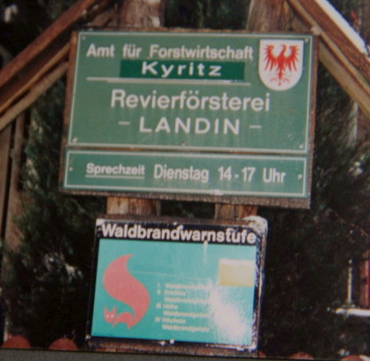 Der Revierförster von Landin, Hans-Joachim Babucke, wohnte am Ende des Dorfes, aber nicht weit von der Kirche in der Bergstraße 4, in einem kleinen Haus. Er hatte seine Frau Ingelore bei der Ausbildung zum Förster kennengelernt und während er nach der Ausbildung seine Arbeit in Landin aufnahm, leitete seine Frau den kleinen Dorfladen. Die Dorfläden gehörten der Konsum-Genossenschaft in der DDR und deshalb nannte man ihn kurz und bündig den „Konsum.“ Er war als Revierförster von 1965 – 2005 in Landin tätig und wohnt heute noch immer in dem kleinen Häuschen mit Garten und Bäumen in Landin. Bis weit in den Herbst geht er im Lochower See zum Schwimmen und hält sich so fit.