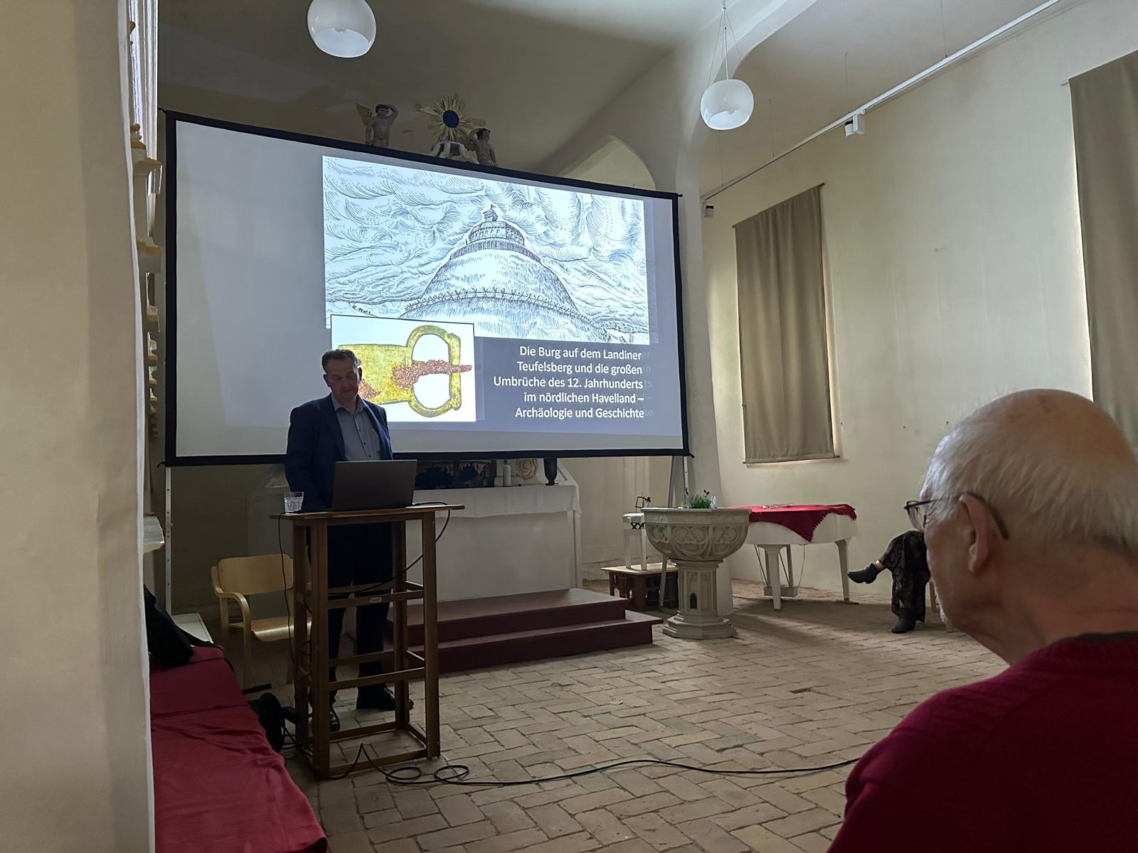 Am vergangenen Sonnabend (13.04.2024) fand in der Landiner Kirche ein sehr interessanter Vortrag zur Geschichte der Besiedlung des nördlichen Havellandes am Beispiel der frühdeutschen Burganlage auf dem Landiner Teufelsberg statt.