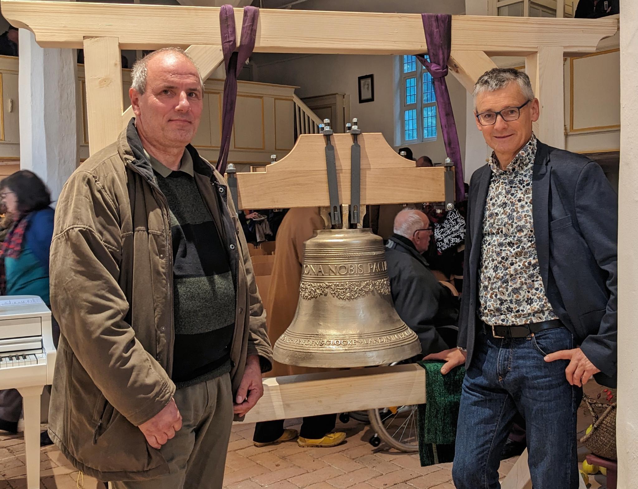 Und hier die beiden, vereinten Glocken, die zwei Tage später zum ersten Mal gemeinsam erklingen konnten: