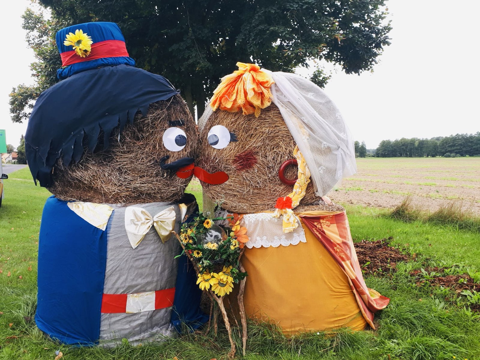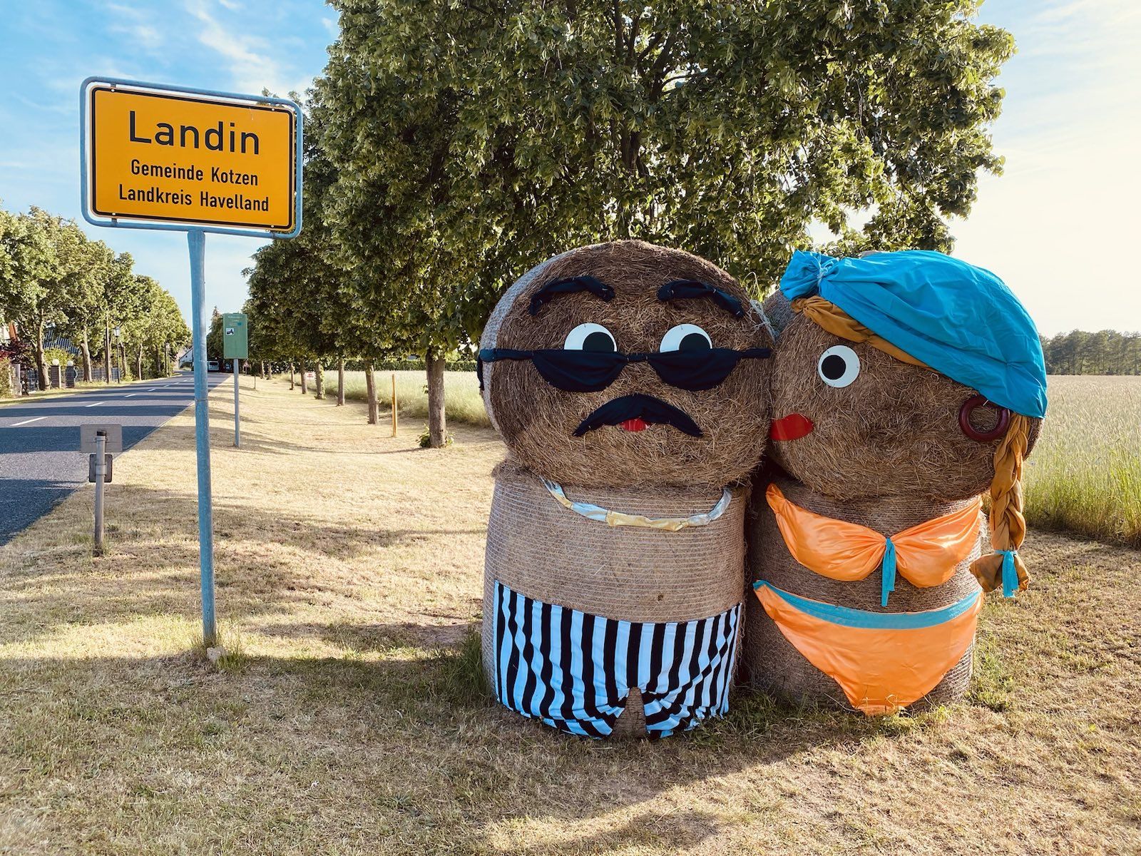 Die schönen, bunt dekorierten Strohpuppen am Ortseingang von Landin erfreuen seit Jahren die Einwohner und Besucher des Ortes.