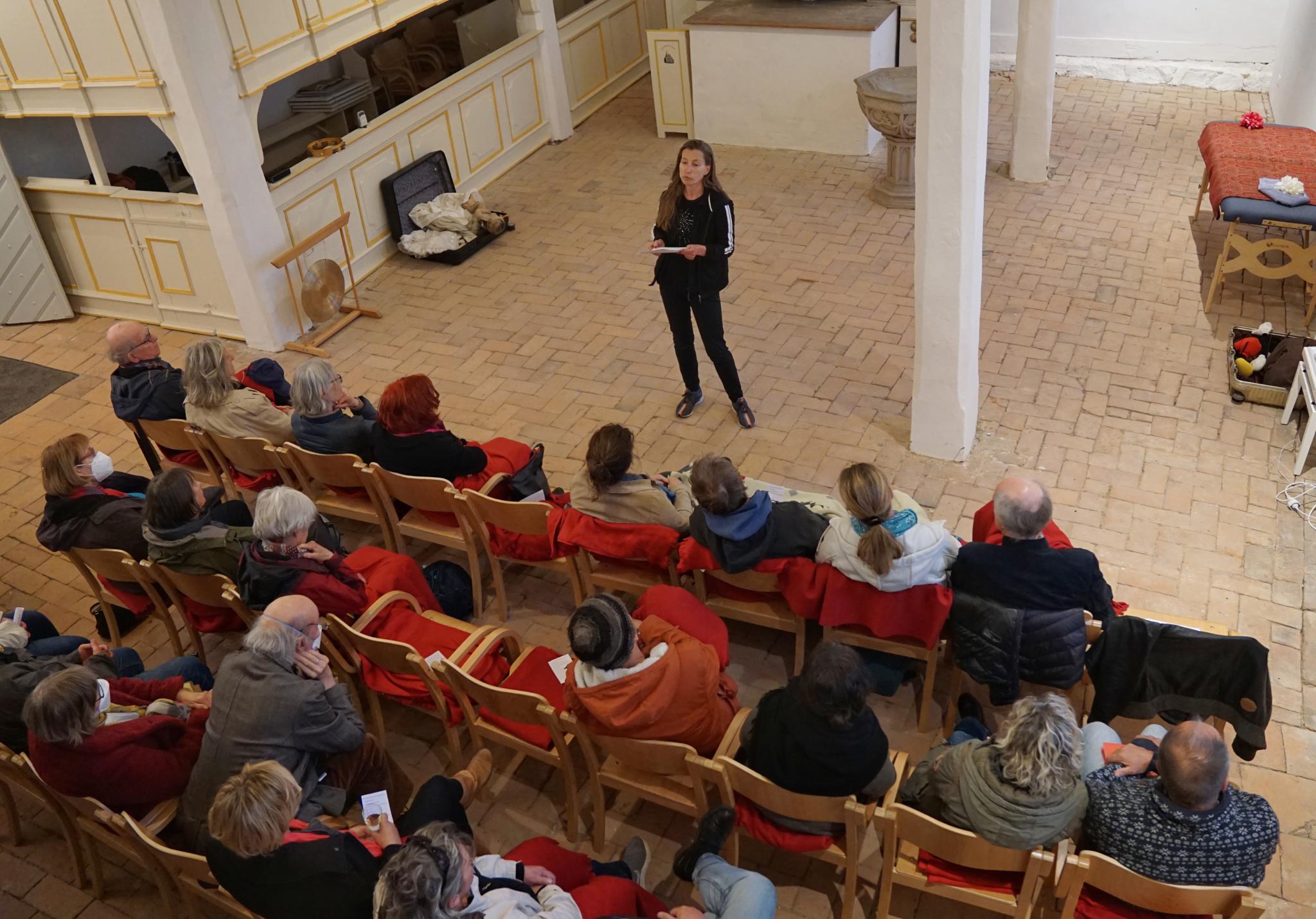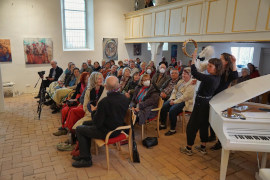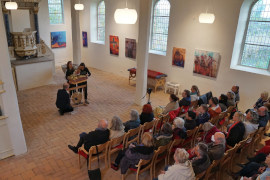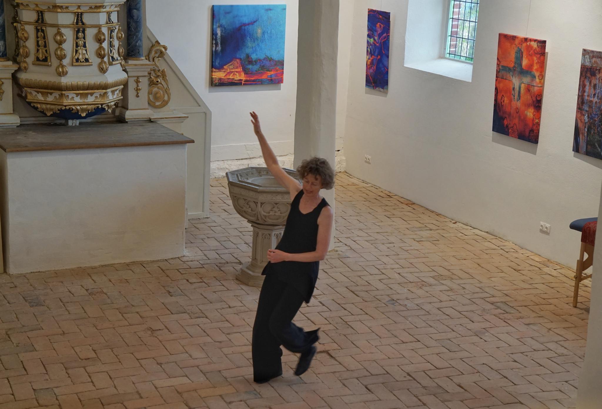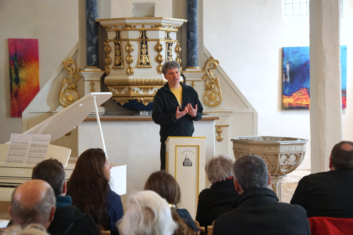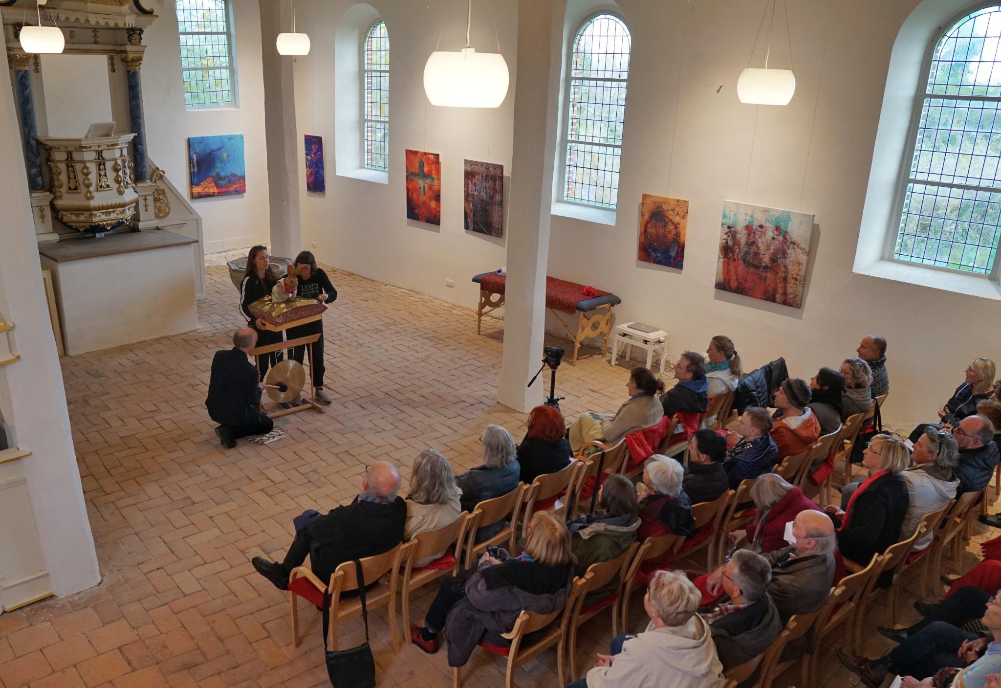 Beeindruckend war auch der Rahmen, in dem die Veranstaltung stattfand: die Aufführungen profitierten von dem frisch restaurierten, historischen Kirchenraum mit den zarten, pastellfarbenen Ausmalungen und der aktuell stattfindenden Ausstellung vom Landiner Künstler Dirk Friese, dessen farbenfrohe Werke in einem gelungenen Kontrast dazu standen.