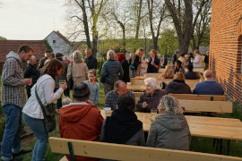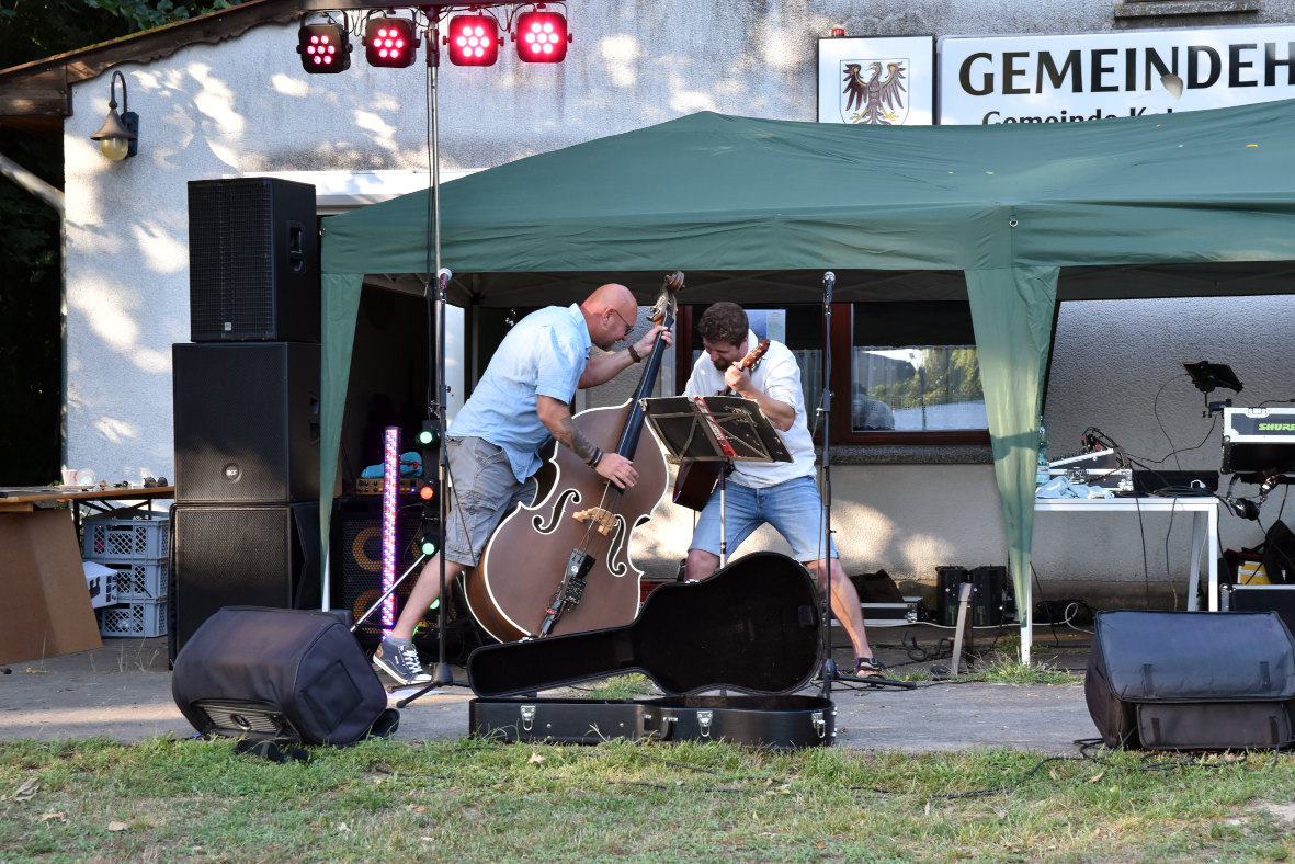Für die gute Stimmung sorgten dann nicht nur gutes Wetter, die leckeren Kuchen, Bratwurst und Bier, sondern auch The Drunkabillys mit ihren Rockabilly und Irish Folk Songs und launigen Kommentaren. Wir hatten das Glück, dass die 2-Mann-Band vom Kulturzentrum Rathenow im Rahmen der Reihe „Kultur auf Tour“ gesponsert wurde. So konnten wir uns aus der Dorfkasse noch einen DJ leisten – Moppi. Er brachte mit seiner guten Musikmischung dann viele Gäste zum Tanzen.