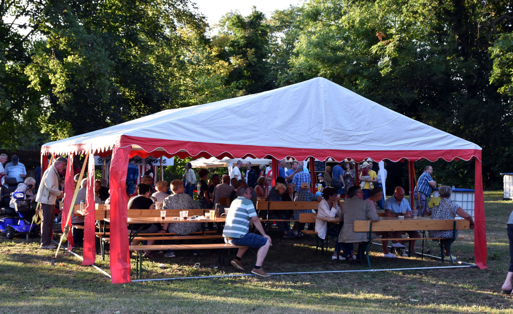Es begann schon lange vorher mit der guten Vorarbeit von Hanka – was muss eingekauft werden, wer backt Kuchen, macht Kartoffelsalat, wer organisiert und stellt die Zelte samt Inventar und Stände auf (und ab), wer gestaltet ein Werbeblatt und wer verteilt es, wer verkauft Kuchen und Kaffee, Tee, Bier, Bratwurst und Steak und wer grillt, wer räumt auf, wer organisiert Spielzeug und Spielspaß für Kinder, wer ist Ansprechpartnerin für die Musiker und den DJ?!!!