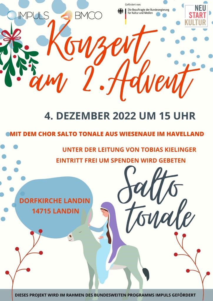 Am 2. Advent, Sonntag, den 04.12.2022 um 15:00 Uhr gastiert der havelländische Chor Salto Tonale in unserer Dorfkirche.