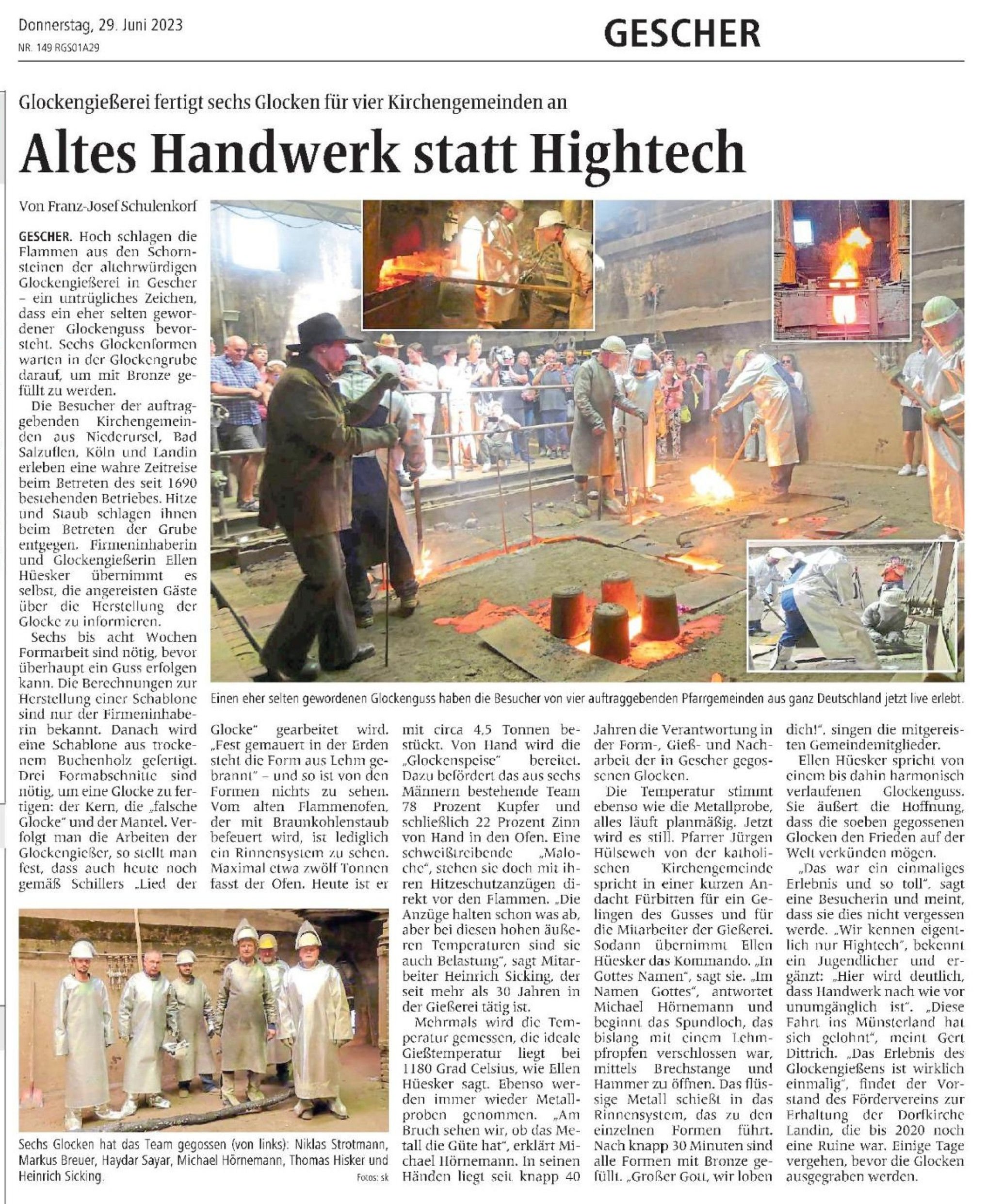 am 16.06.2023 um 15:00 Uhr erfolgt der Glockenguss in der Gießerei Petit & Edelbrock in der historischen Glockengießerstadt Gescher.