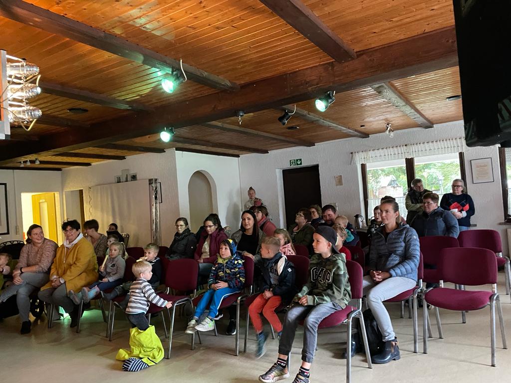 Die fröhliche Kinderschar, ihre Eltern und Großeltern waren von Anfang an in den Bann der Geschichte um die Hexe Wackelzahn gezogen.