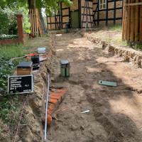 Zur Zeit findet gerade die geplante Wegepflasterung statt.