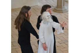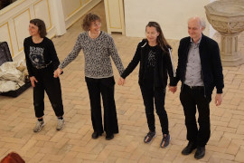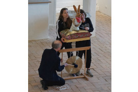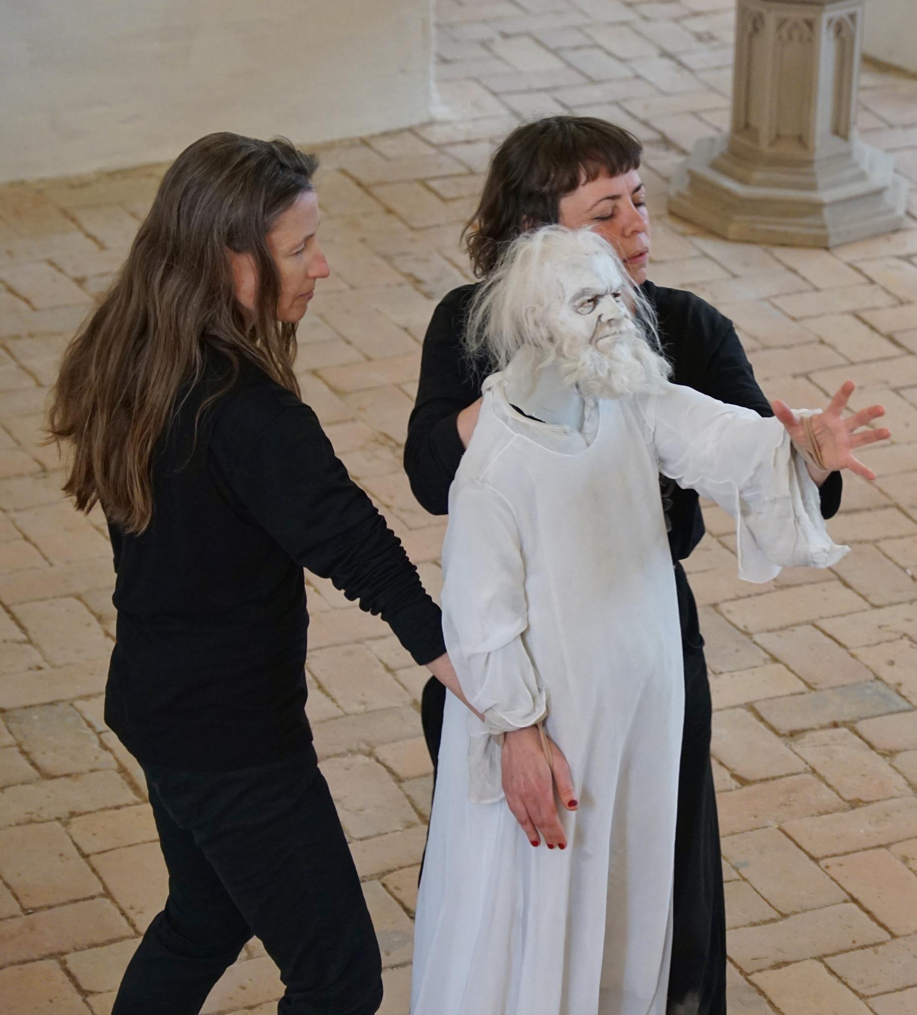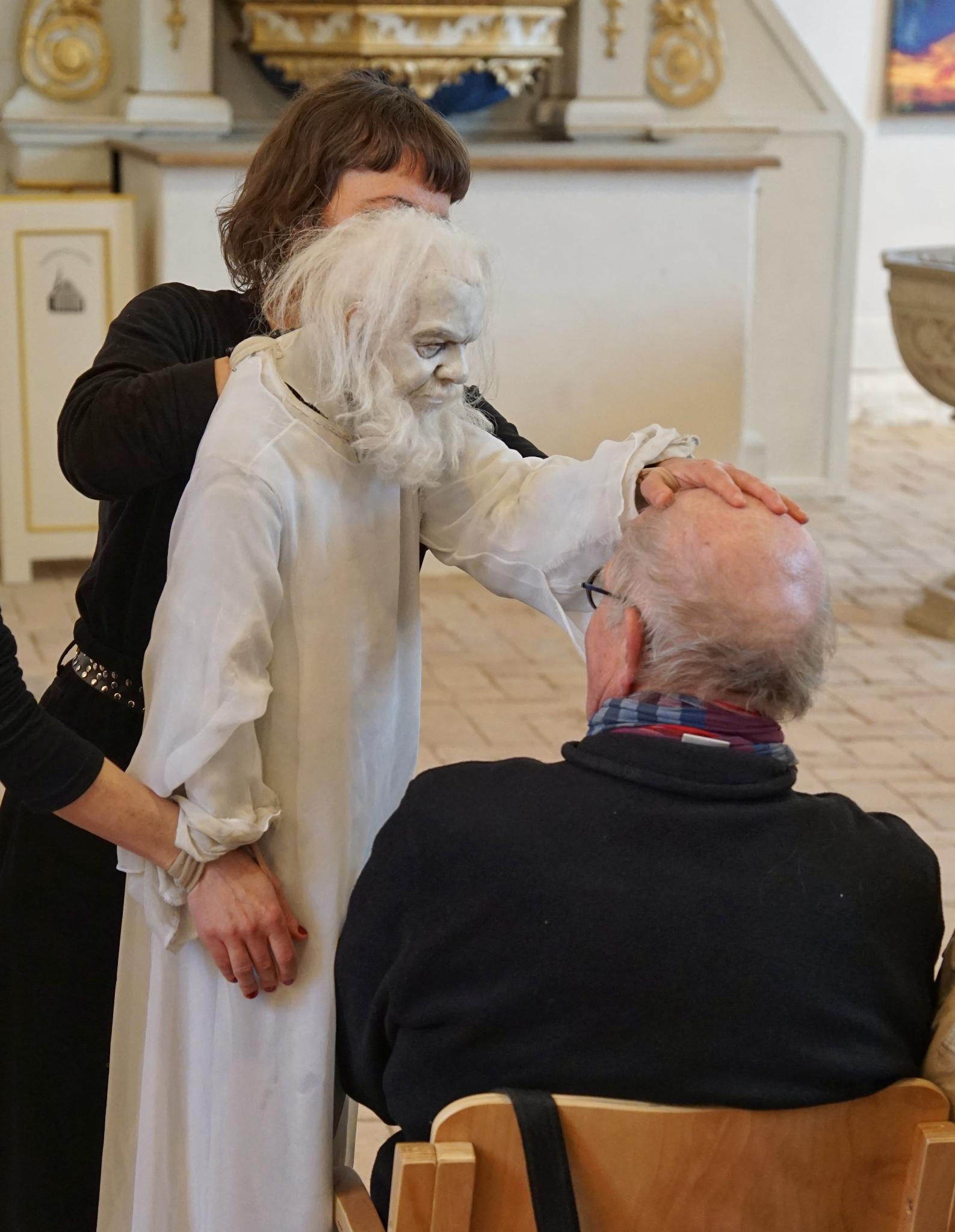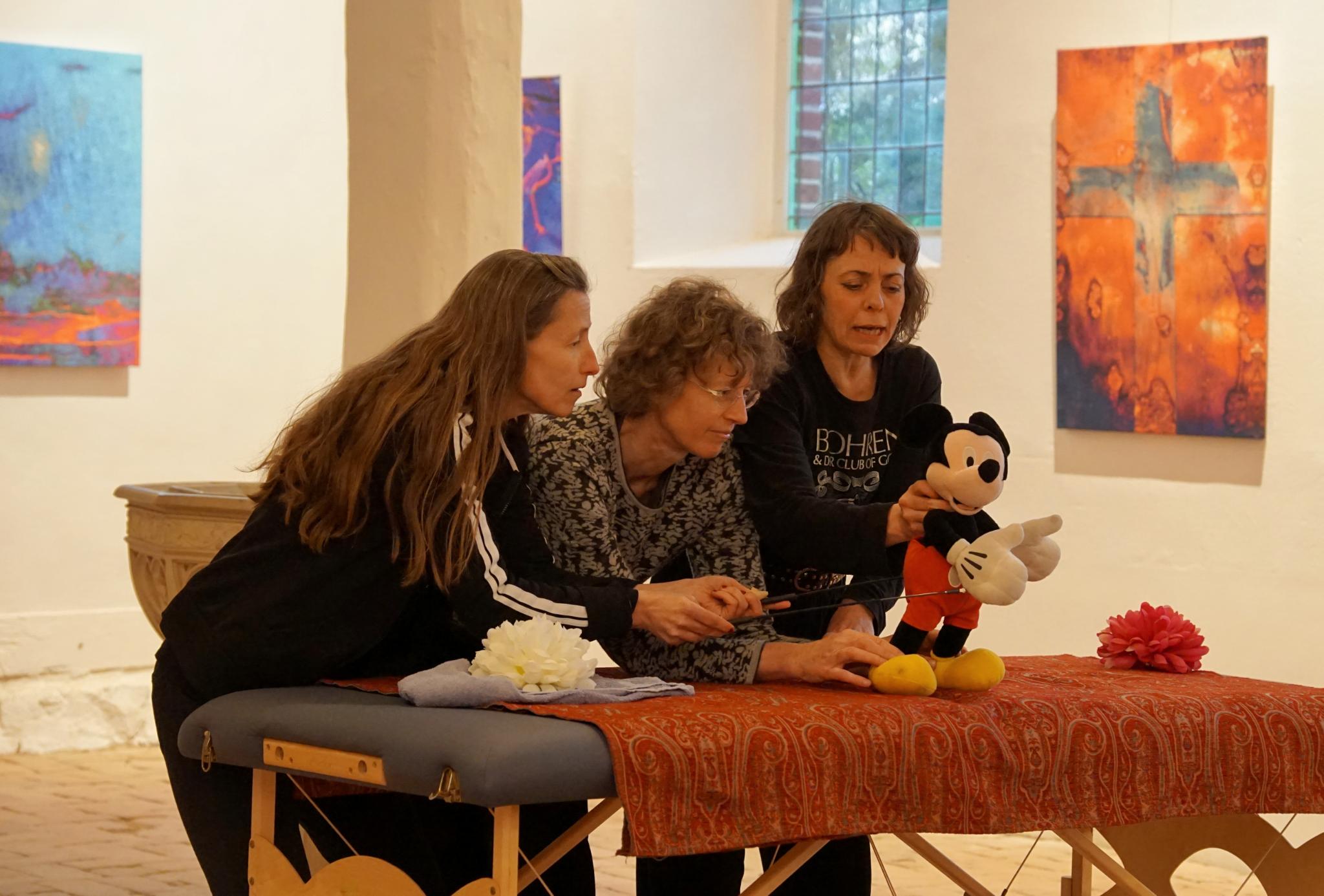 Suse Wächter (Puppenspiel), Ulrike Krause (Tanz, Klavier und Gesang), Sonja M. Schultz (Autorin) und Jörg Schmid (Pfarrer, Flötist und Märchenerzähler) hatten spontan und improvisiert ein anspruchsvolles Programm zusammengestellt, welches dem Publikum einiges an Aktivität abverlangte und von Anfang an fesselte.