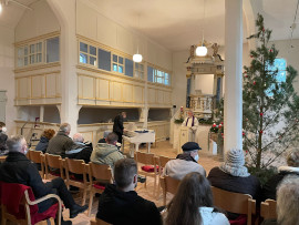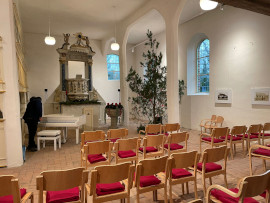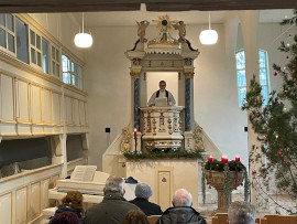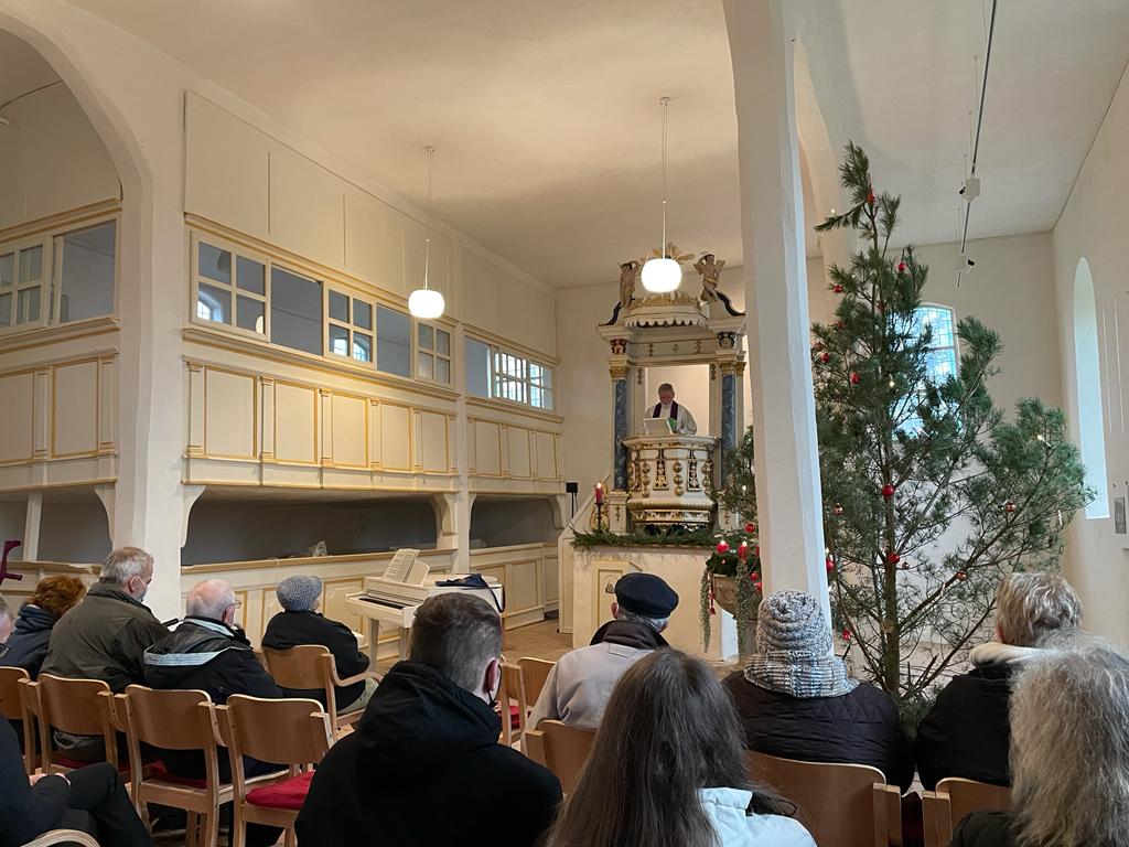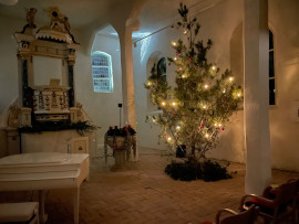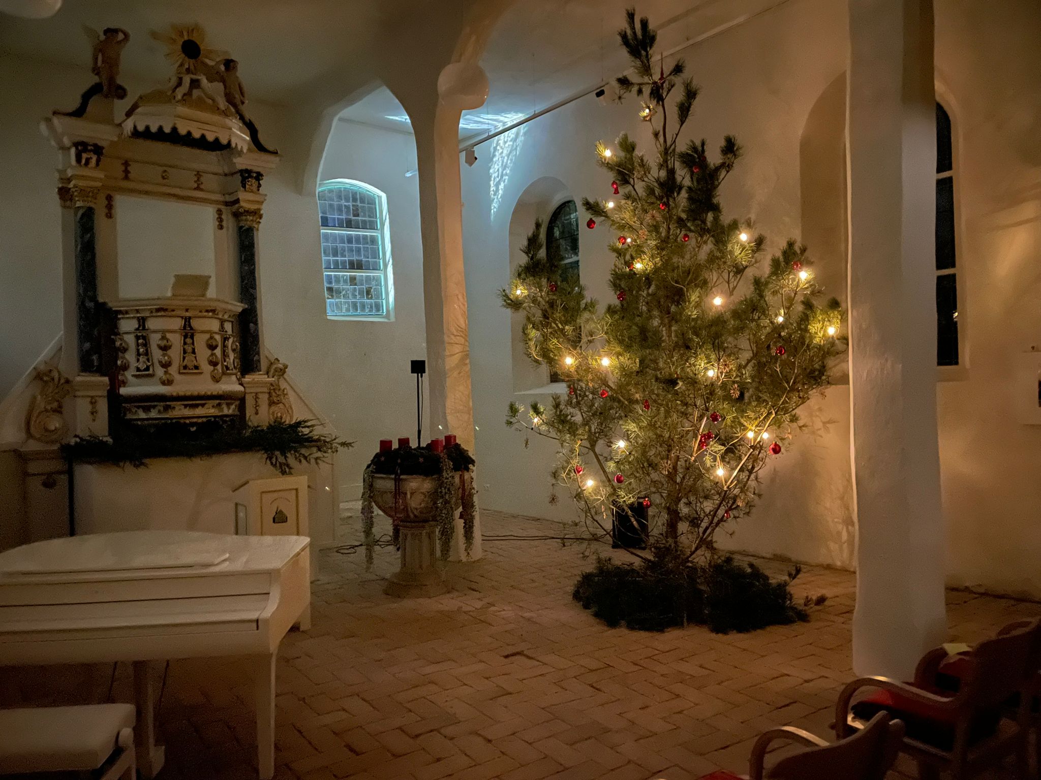 am Heiligen Abend findet um 16:30 Uhr eine schlichte Weihnachtsandacht in der festlich geschmückten Landiner Kirche statt.
