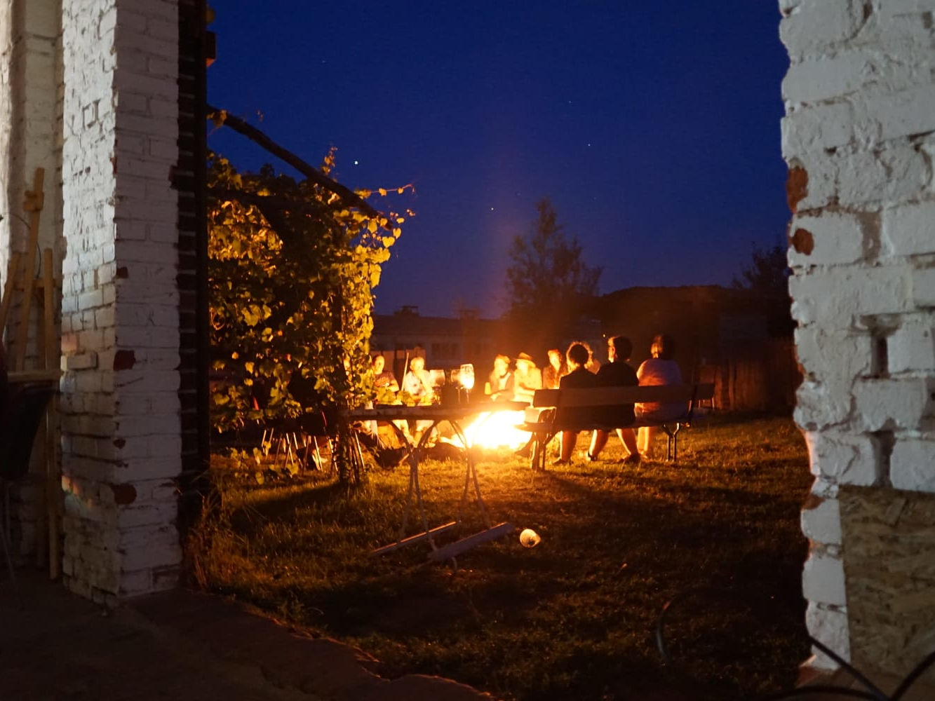 In der Dämmerung entfachten wir ein kleines Lagerfeuer, an dem es zu netten Gesprächen kam während in der Scheune die Berliner DJ´s A&O tanzbare Musik auflegten. Bis zum frühen Morgen wurde das Tanzbein geschwungen.