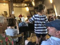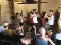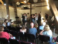 Gegen 19:00 Uhr spielte die Klezmer-Band QuerBeet aus Berlin und heizte die Scheune so richtig ein. Ein begeisterungsfähiges Publikum feuerte