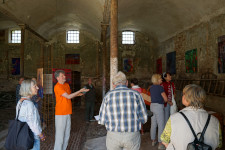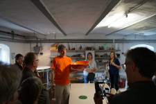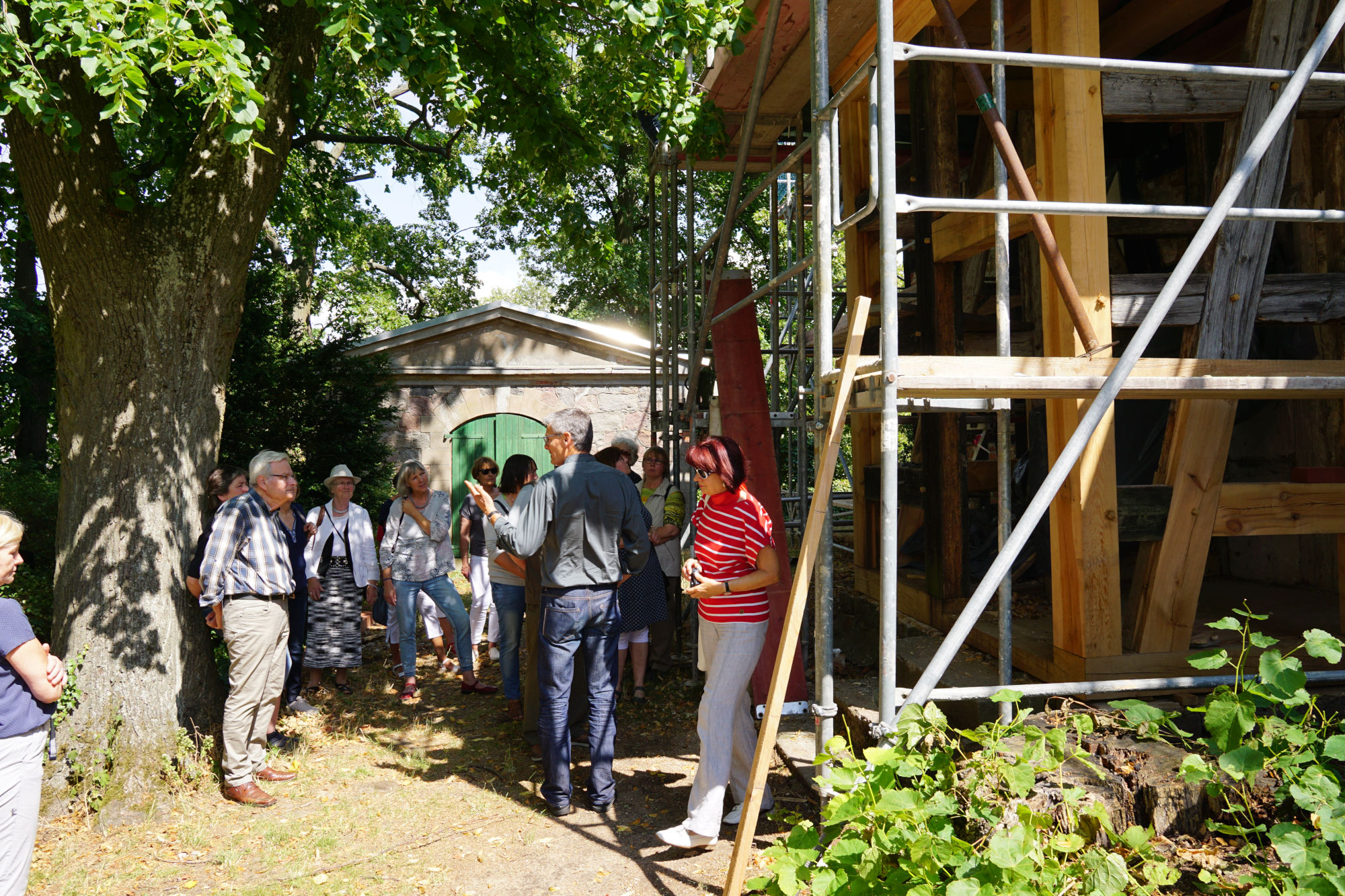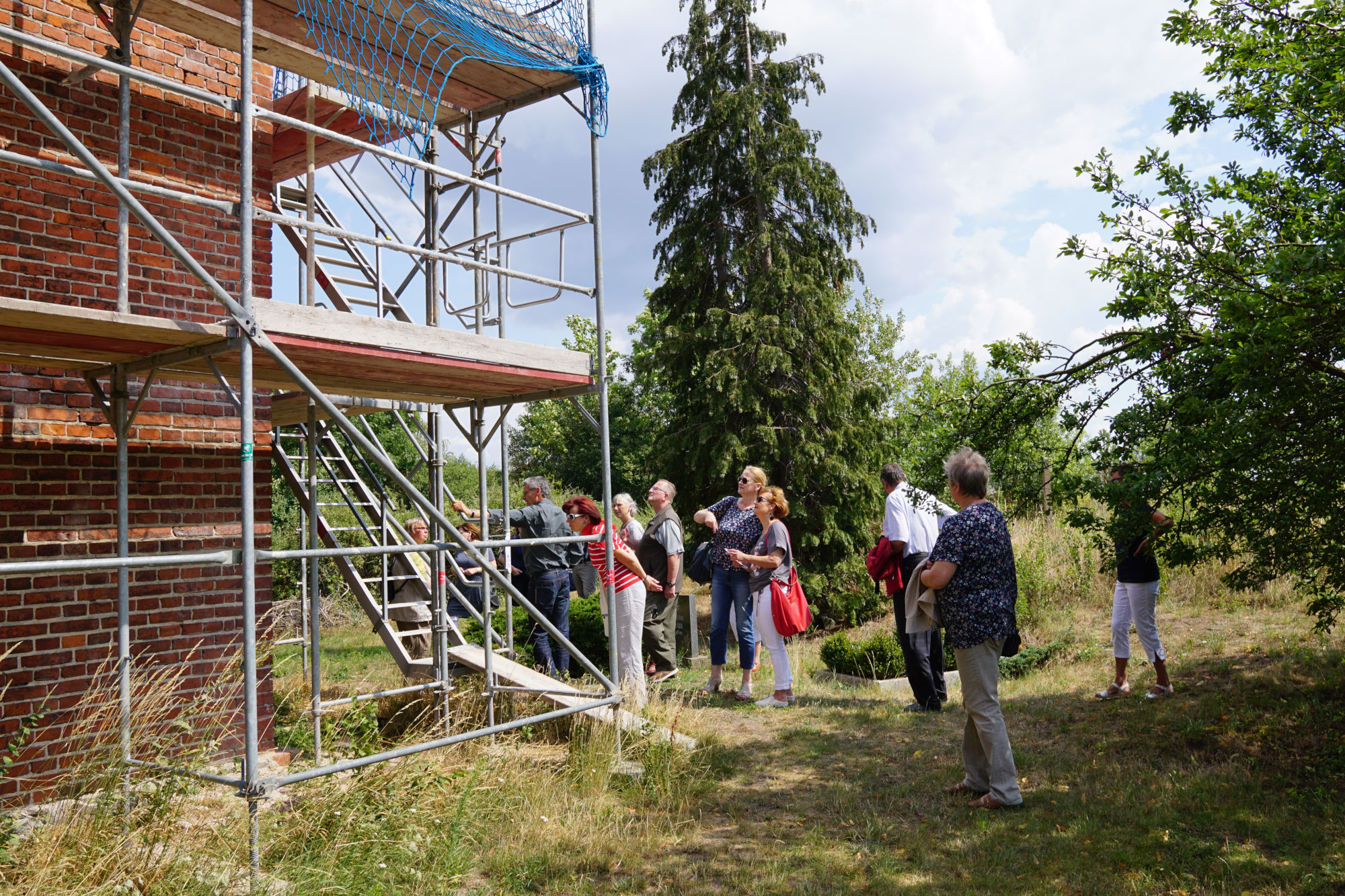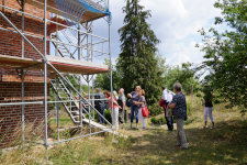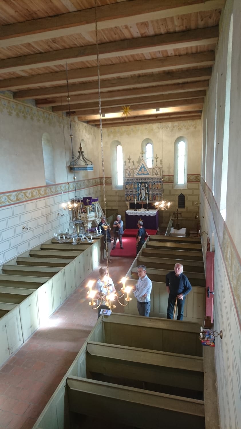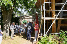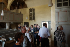 Im Anschluss gab es einen Imbiss und eine Führung durch und um die Landiner Kirche. Hier konnten sich die Besucher ein eindrucksvolles Bild von den Schädigungen an der Bausubstanz des Gebäudes machen – aber auch von der soliden Qualität der Sanierungsarbeiten. Die Zimmerleute, Maurer und Dachdecker arbeiten hier unter schwierigen Bedingungen und liefern eine sehr gute Arbeit ab. Sobald müssen wir dann hoffentlich nicht mehr sanieren. Es gab ein großes Interesse und viel Fragen zu Details rund um die Landiner Kirche.