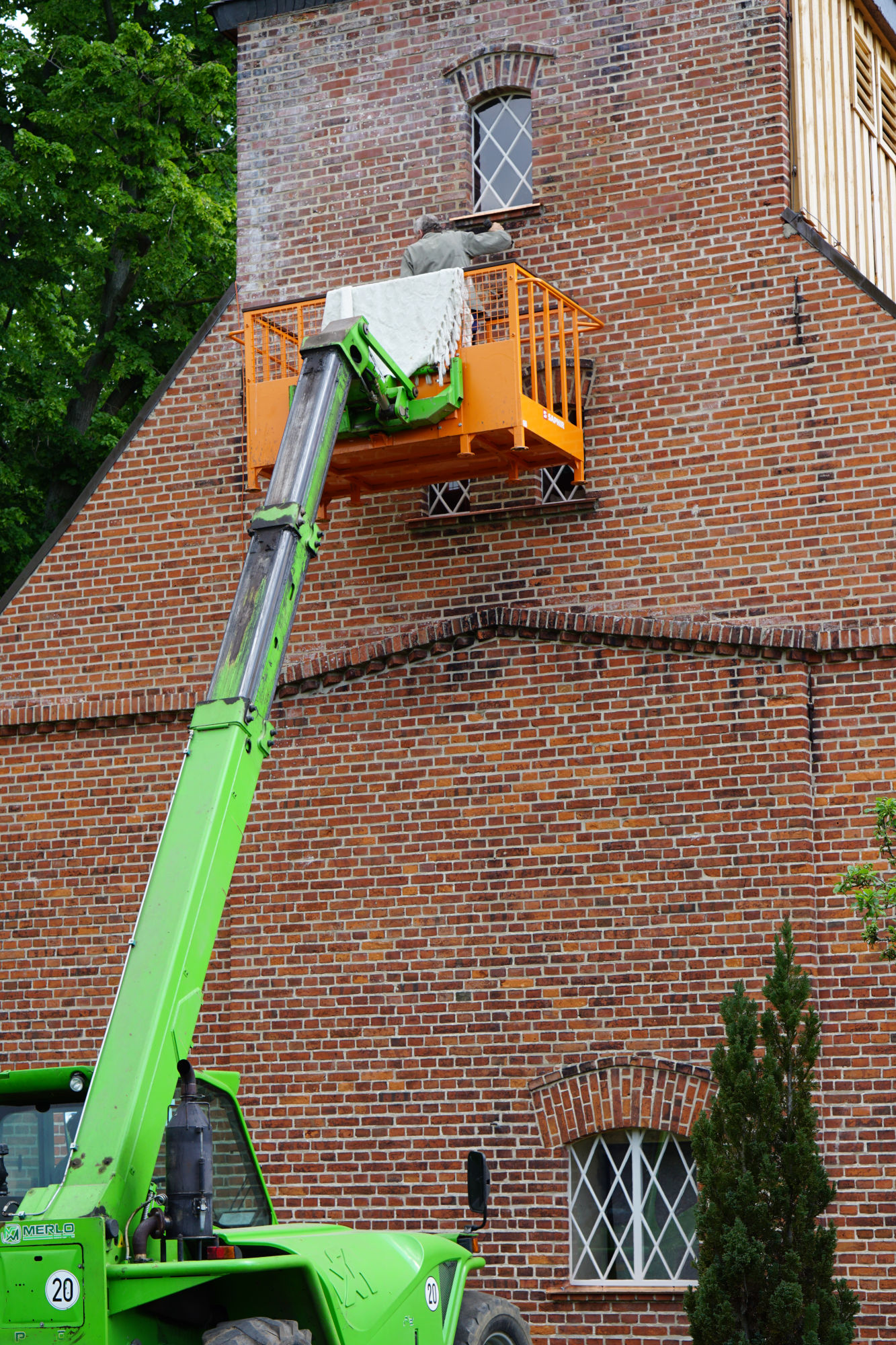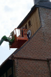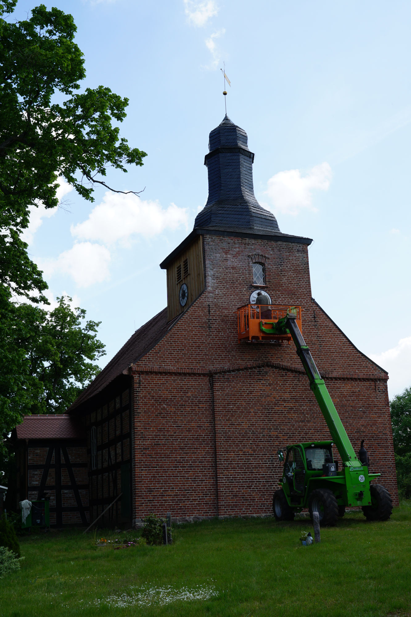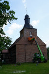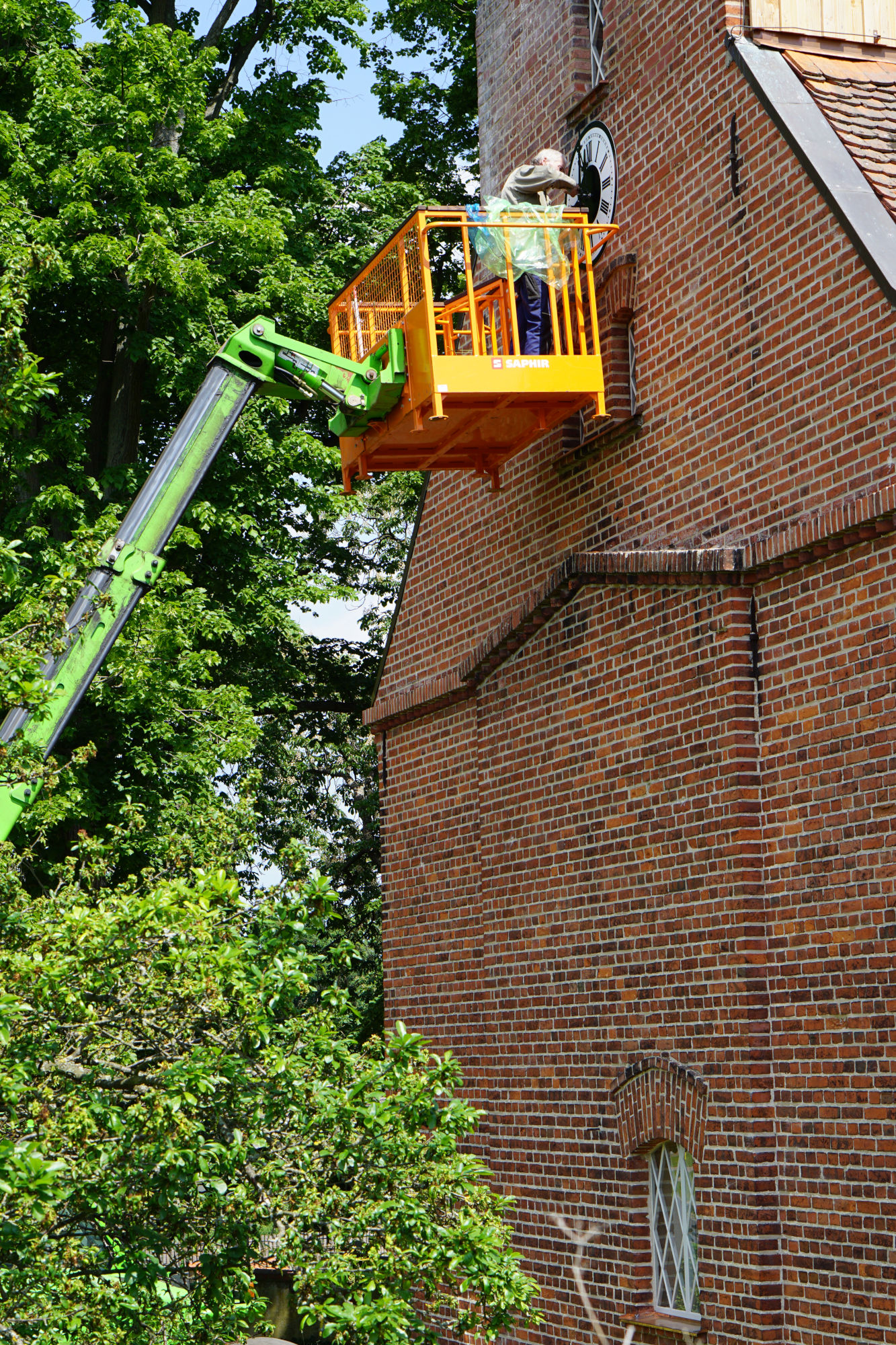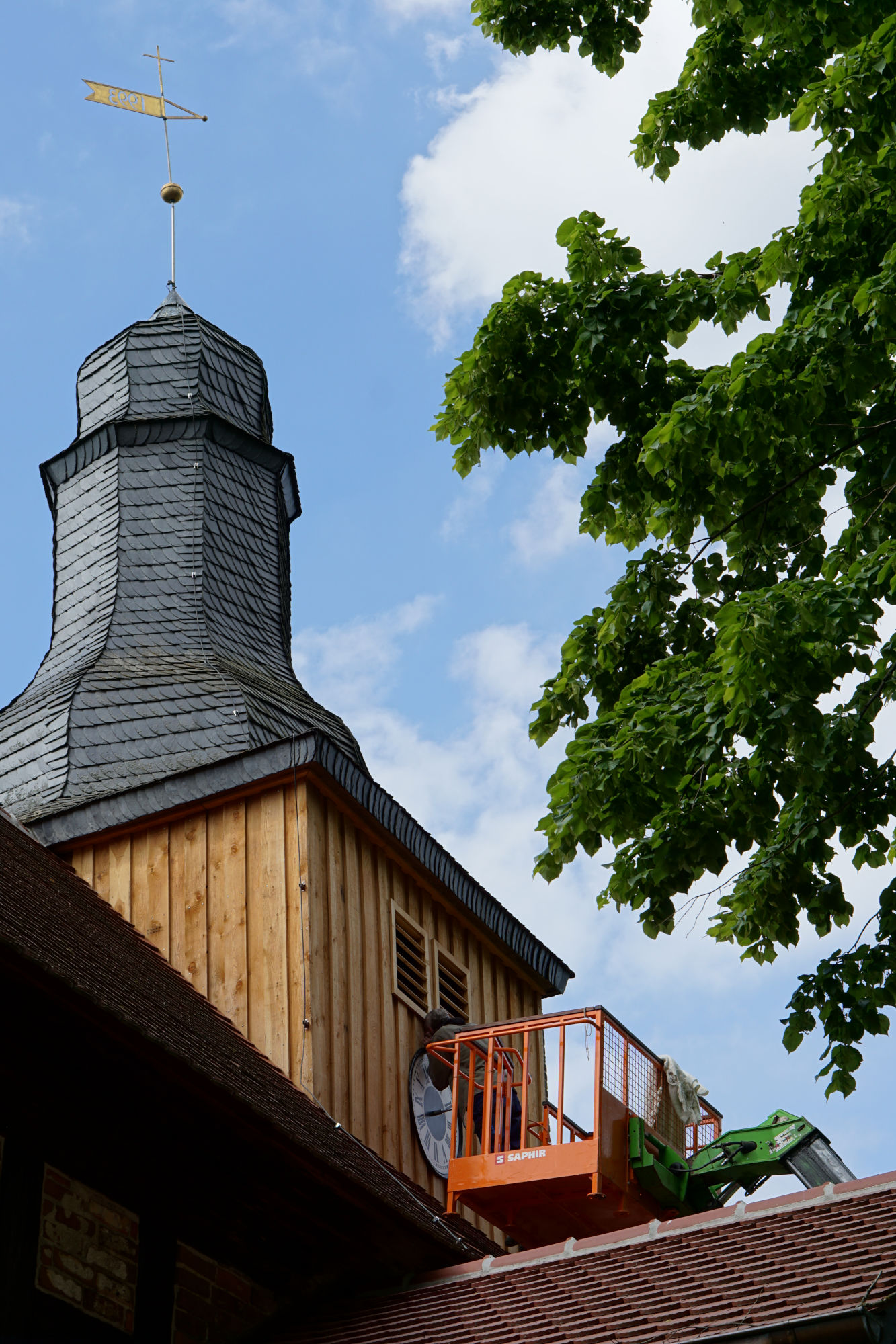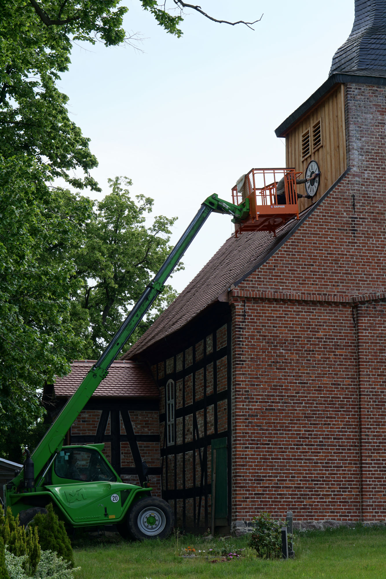 Anbringung der Uhren auf der Nord- und Westseite der Kiche (Mai 2020):
