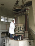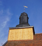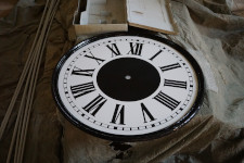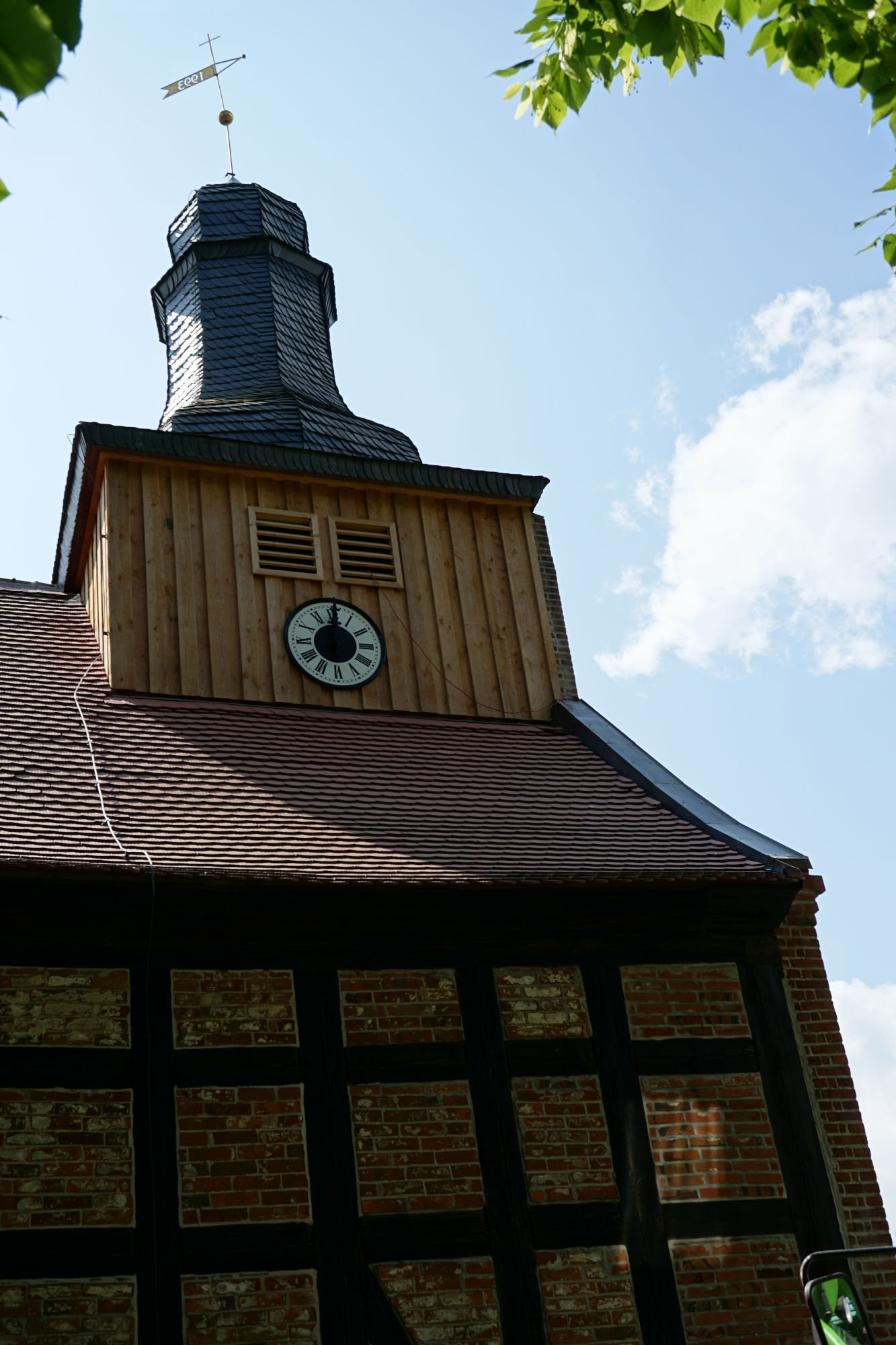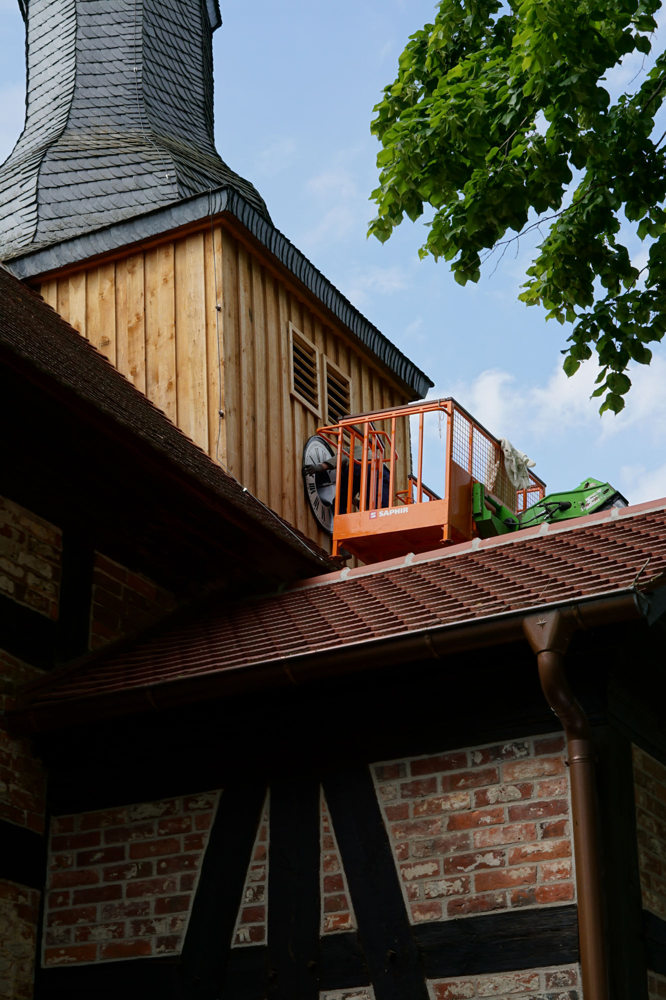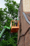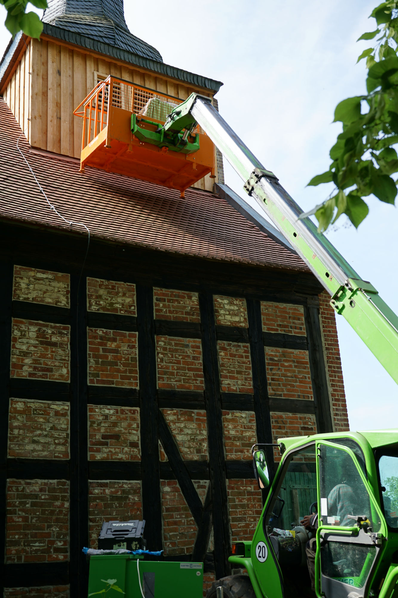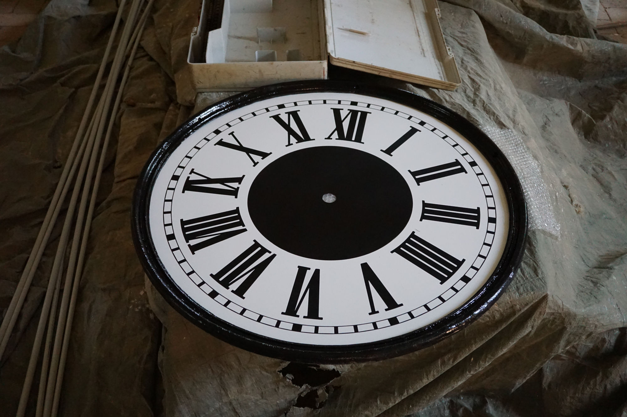 Anbringung der Uhren auf der Nord- und Westseite der Kiche (Mai 2020):