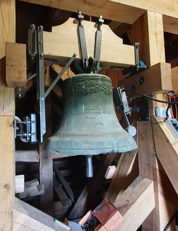 Weiterhin wurde der Glockenstuhl überarbeitet und eine elektrische Läuteanlage eingebaut.