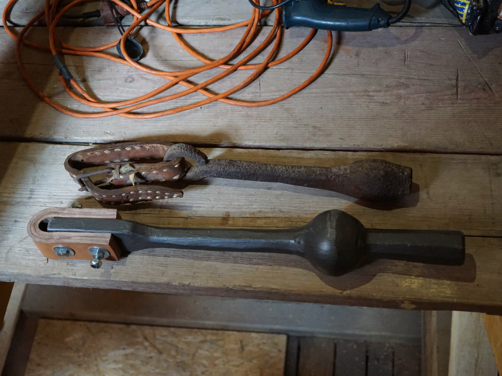 Alter, unbrauchbarer und neuer Klöppel der Glocke. |